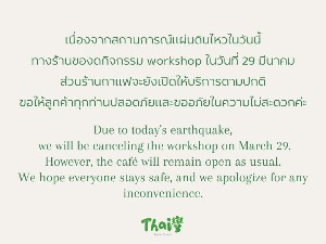 ประกาศ|ยกเลิกเวิร์กชอปวันที่ 29 มีนาคม