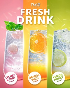 สงกรานต์นี้ Thaiwan Café เปิดทุกวัน! สดชื่นกับโซดา 3 รส—ลิ้นจี่เบอร์รี่ ส้มยูซุ และน้ำผึ้งเลมอน เพียงแก้วละ 130 บาท จะนั่งดื่มหรือซื้อกลับก็ได้ี